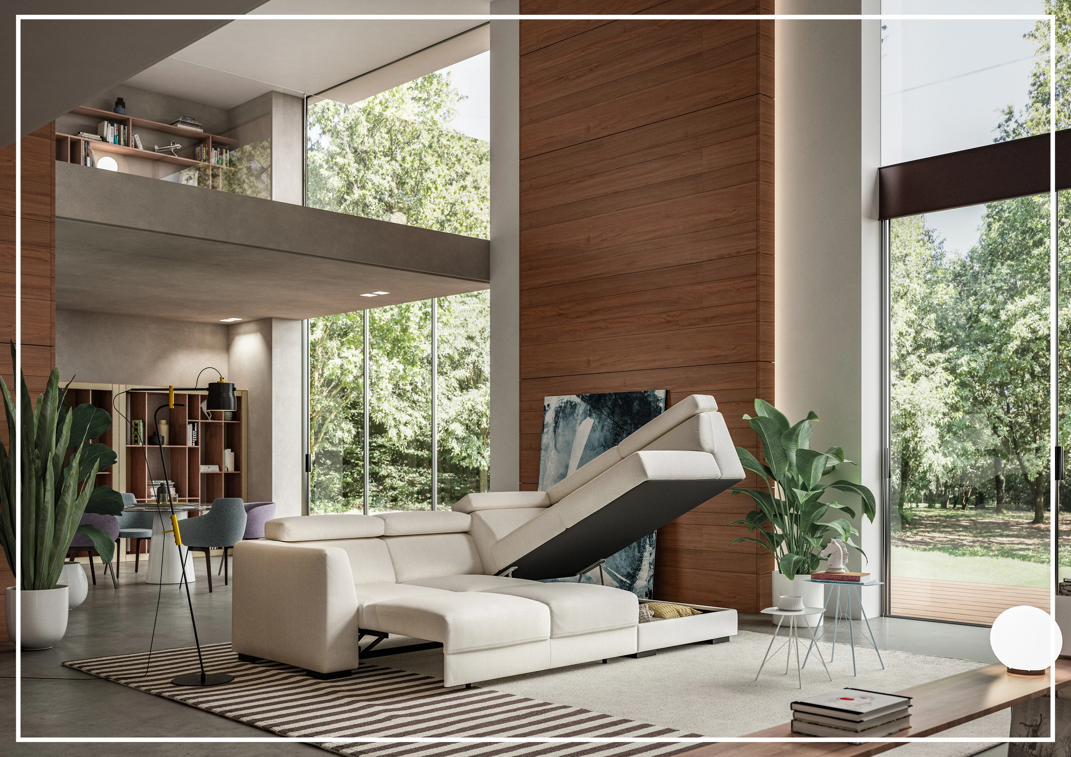 The Halti sectional sofa is designed for both sitting and lounging, with extended seating for those who want to truly relax. The ratchet headrests provide supreme comfort for sitting. At the same time, the arm-to-arm sleeping area offers ample space for a comfortable night's sleep. And for those who need a little extra storage space, we've included a convenient storage box under the chaise. If you're looking for a premium sectional sleeper, look no further than Halti by Luonto Furniture.